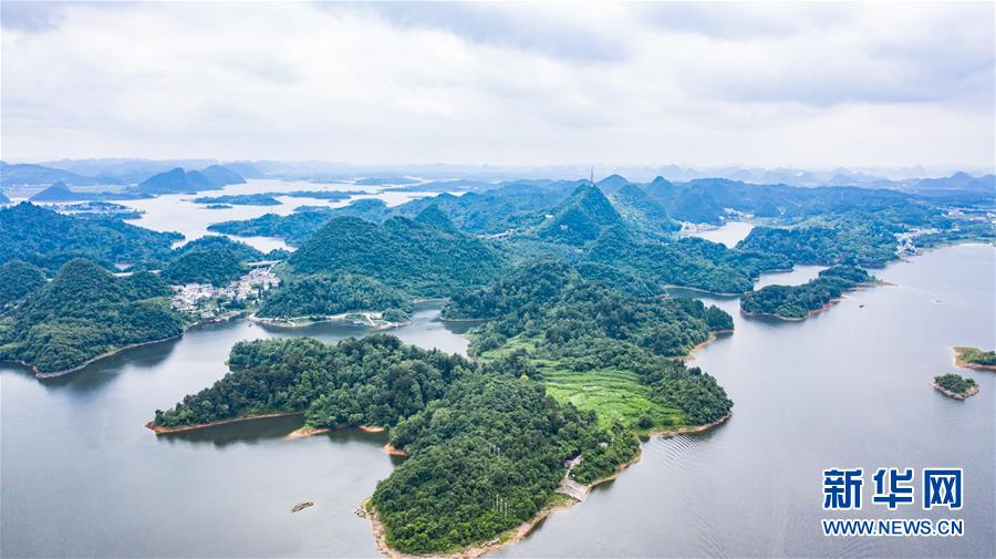 6月21日拍攝的紅楓湖景區(qū)風(fēng)光(無(wú)人機(jī)照片)。夏至?xí)r節(jié),貴州省清鎮(zhèn)市紅楓湖景區(qū)草木蒼翠,秀麗的湖光山色吸引不少游客前來(lái)游玩。新華社記者陶亮攝