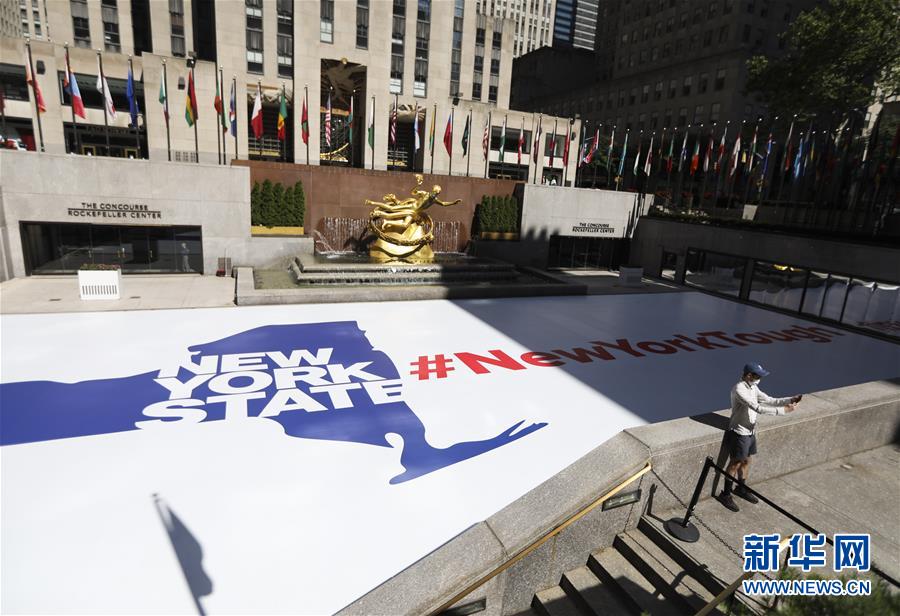 6月22日,在美國(guó)紐約洛克菲勒中心,一名男子在寫有“紐約堅(jiān)強(qiáng)”字樣的廣場(chǎng)自拍。美國(guó)約翰斯·霍普金斯大學(xué)22日發(fā)布的新冠疫情最新統(tǒng)計(jì)數(shù)據(jù)顯示,美國(guó)累計(jì)死亡病例超過12萬(wàn)例。新華社記者王迎攝