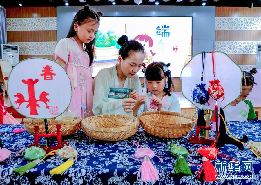 6月23日,長(zhǎng)興縣李家巷鎮(zhèn)中心幼兒園的孩子們?cè)诶蠋煹膸ьI(lǐng)下,一起制作端午香囊。為了迎接即將到來(lái)的端午節(jié),浙江省湖州市長(zhǎng)興縣各個(gè)幼兒園開(kāi)展“品民俗迎端午”主題活動(dòng),讓小朋友們體驗(yàn)傳統(tǒng)民俗文化。新華社記者徐昱攝