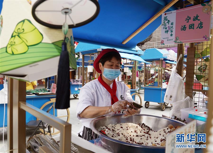 6月24日,在上海豫園舉辦的端午花神國風(fēng)廟會(huì)上,老字號寧波湯團(tuán)店的師傅在包制傳統(tǒng)的“枕頭粽”。端午節(jié)臨近,各地舉行包粽子、做香包、賽龍舟等豐富多彩的民俗文化活動(dòng),迎接傳統(tǒng)佳節(jié)的到來。新華社記者劉穎攝