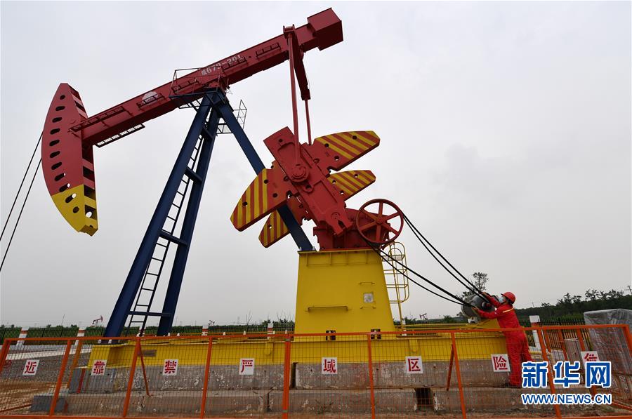 6月29日,馮萌萌在大港油田采油二廠二區(qū)內(nèi)查看設(shè)備運行情況。新華社記者李然攝