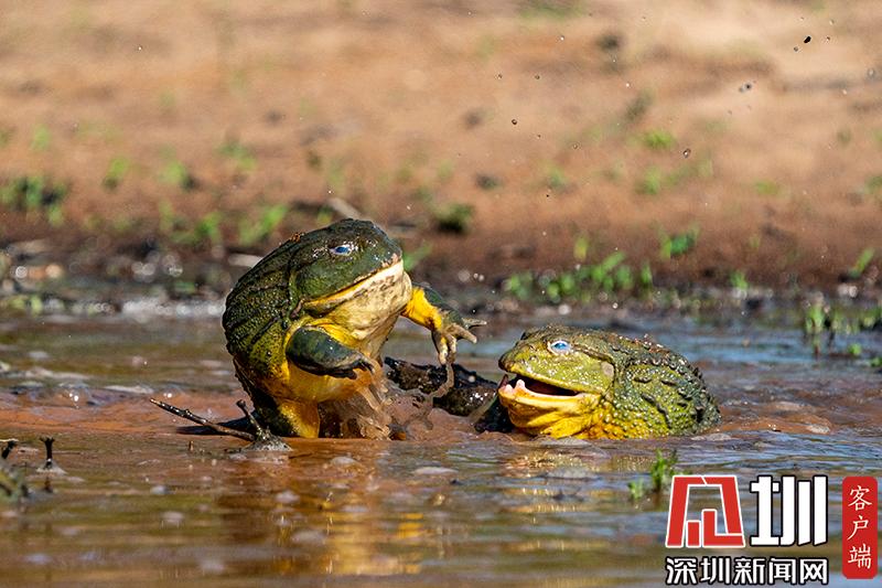 上演“全武行”!非洲雄性牛蛙為爭奪雌性伴侶大打出手