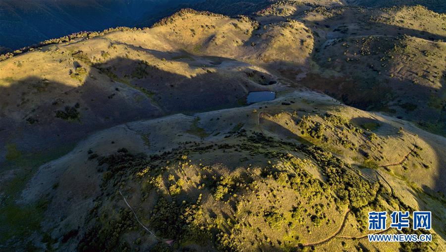 6月30日,朝霞照耀下的神田草甸(無人機(jī)照片)。位于陜西省安康市嵐皋縣與重慶市城口縣交界處大巴山神田主脊北坡的神田草甸,面積超過1.1萬畝。夏日的朝霞中,起伏的草甸仿佛一塊寬大無邊的綠色地毯,鑲嵌在大巴山上,如詩(shī)如畫。新華社發(fā)(邱仕君攝)