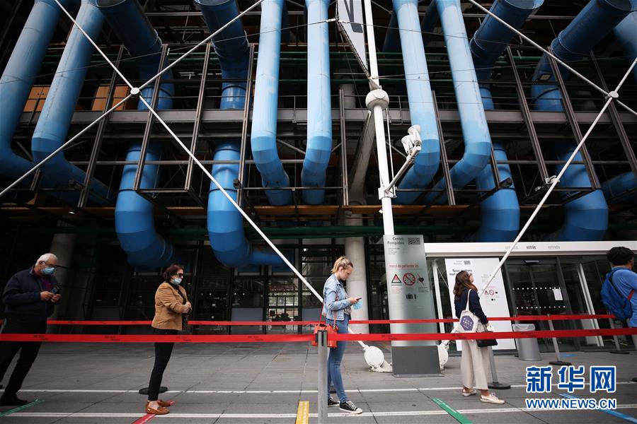 7月1日,參觀者在法國巴黎蓬皮杜藝術中心外排隊等待。因新冠疫情關閉的法國巴黎蓬皮杜藝術中心于7月1日重新開門迎客。目前,中心只開放6層的臨時展區(qū)和4、5層的現代藝術常設展區(qū)。參觀者需提前網上預約參觀時段,11歲以上參觀者須佩戴口罩,參觀過程中保持安全距離。新華社記者高靜攝