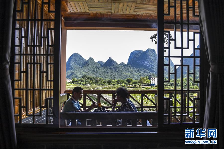 陽朔縣位于廣西東北部,桂林市區(qū)南面,宜人的山水風光與悠久的歷史文化吸引著中外游客前來觀光。近年來,當?shù)卣e極發(fā)展特色精品民宿產(chǎn)業(yè),鼓勵當?shù)厝罕妳⑴c旅游服務,讓游客獲得更周到服務的同時,促進當?shù)厝罕娋蜆I(yè)增收,助力鄉(xiāng)村振興。新華社記者曹祎銘攝