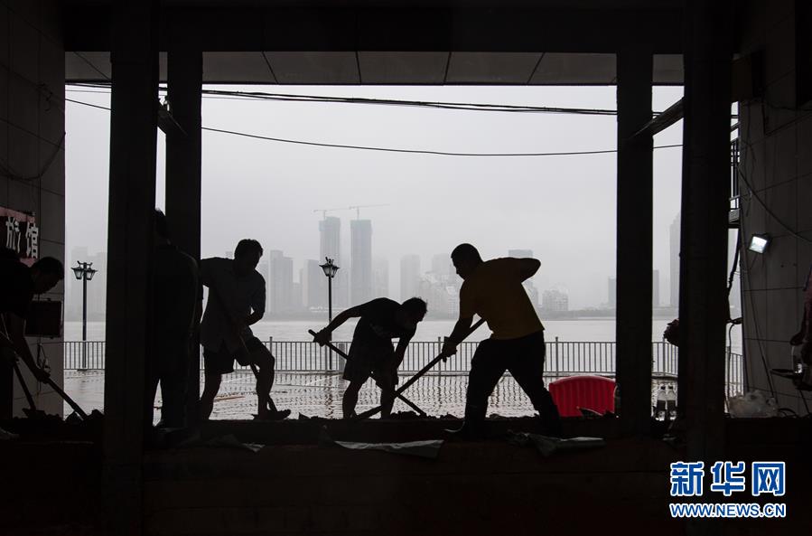 7月6日,工作人員在武漢龍王廟封堵閘口。記者6日從武漢市防汛抗旱指揮部辦公室獲悉,5日以來,武漢遭暴雨襲擊,全市多處路段漬水。至6日4時(shí),長(zhǎng)江漢口站超設(shè)防水位1.79米,漢江新溝站超警戒水位0.01米。鑒于當(dāng)前水雨汛情和漬澇情況,武漢市從6日5時(shí)起,將排澇應(yīng)急響應(yīng)級(jí)別提升至Ⅱ級(jí);從6時(shí)30分起,將防汛應(yīng)急響應(yīng)級(jí)別提升至Ⅱ級(jí)。新華社記者肖藝九攝
