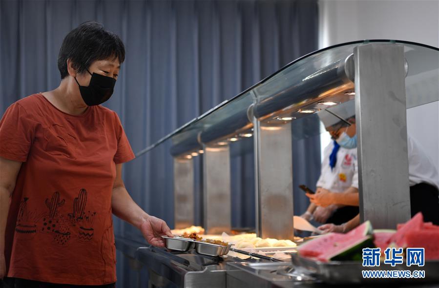 7月7日,老人在付村康養(yǎng)中心(老人家食堂)打餐。近日,天津市西青區(qū)精武鎮(zhèn)付村康養(yǎng)中心(老人家食堂)運(yùn)營(yíng)已步入正軌。該老人家食堂面積約850平方米,由專業(yè)餐飲企業(yè)負(fù)責(zé)日常運(yùn)營(yíng),并享受政府補(bǔ)貼,可滿足付村及周邊老人的就餐需求,還能提供外帶、送餐服務(wù)。據(jù)了解,為切實(shí)解決老年人吃飯難問(wèn)題、增加老年人幸福感,西青區(qū)將老人家食堂建設(shè)納入2020年區(qū)政府民心工程。目前,已建成51家老人家食堂。新華社記者李然攝