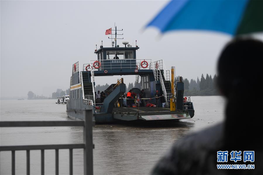 7月8日,杭州市富陽區(qū)東洲街道五豐島的最后一批居民乘坐輪渡撤離出來。新華社記者徐昱攝