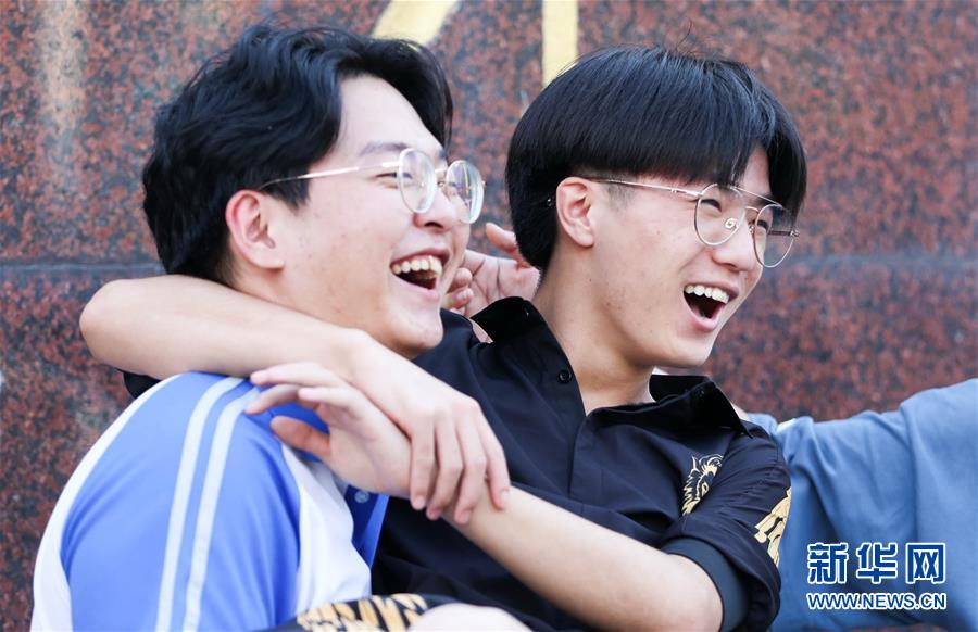 7月8日,在吉林省長(zhǎng)春市第八中學(xué)考點(diǎn)門(mén)口,考生慶祝高考結(jié)束。當(dāng)日,全國(guó)部分地區(qū)2020年高考結(jié)束。新華社發(fā)(顏麟蘊(yùn)攝)