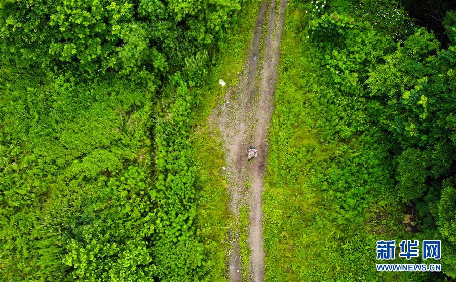 7月8日,董紅雨在迎春林業(yè)局有限公司施業(yè)區(qū)內(nèi)進(jìn)行野生東北虎信息搜集和巡護(hù)工作(無(wú)人機(jī)照片)。