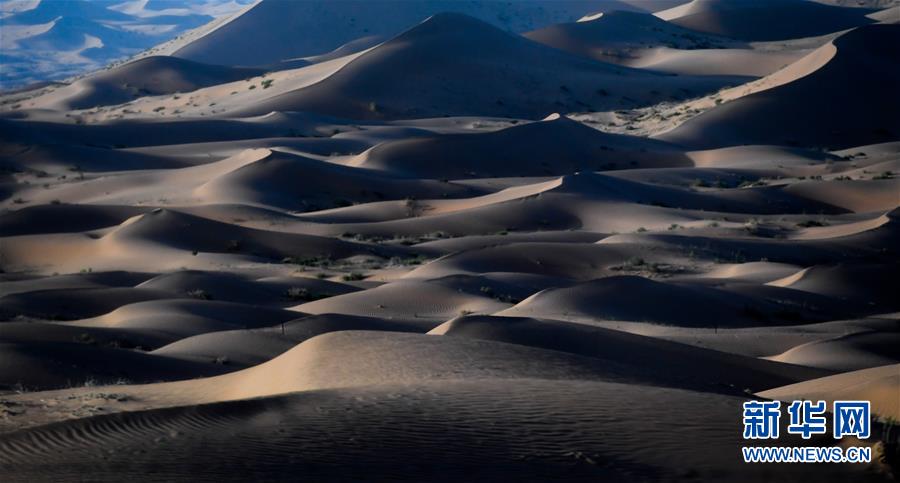 這是7月8日拍攝的騰格里沙漠風(fēng)光。位于內(nèi)蒙古自治區(qū)阿拉善左旗西南部和甘肅省中部邊境的騰格里沙漠是我國(guó)第四大沙漠,總面積約為4.3萬平方公里。夏日傍晚,騰格里沙漠連綿的沙丘被日光勾勒出美麗的線條,美不勝收。新華社記者連振攝