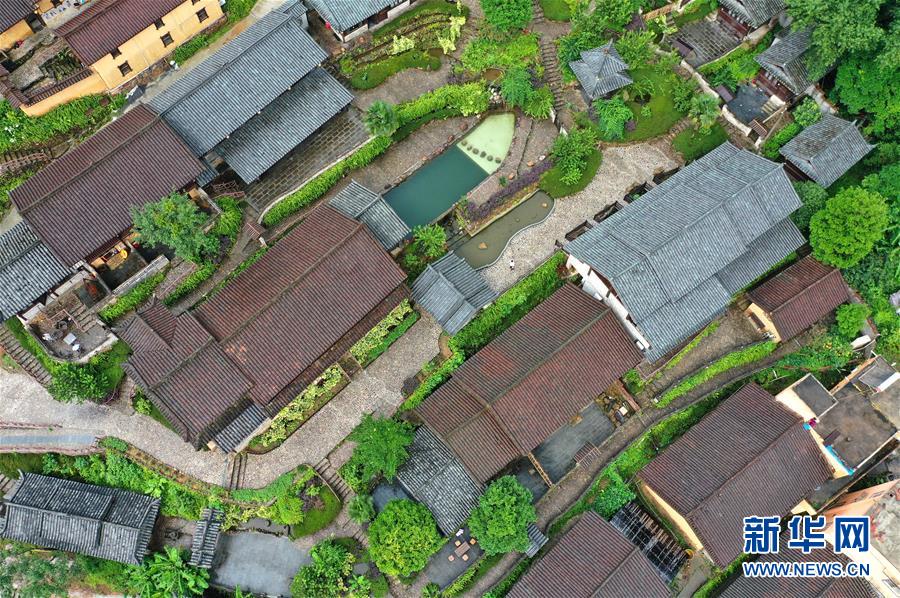 7月11日拍攝的金秀瑤族自治縣六巷鄉(xiāng)的一處民宿(無人機(jī)照片)。近年來,廣西金秀瑤族自治縣依托當(dāng)?shù)刈匀簧鷳B(tài)優(yōu)勢,圍繞境內(nèi)豐富的瑤族文化,大力發(fā)展鄉(xiāng)村旅游,精心打造一批獨(dú)具瑤族特色的山間民宿酒店,取得良好經(jīng)濟(jì)效益。新華社記者 周華 攝