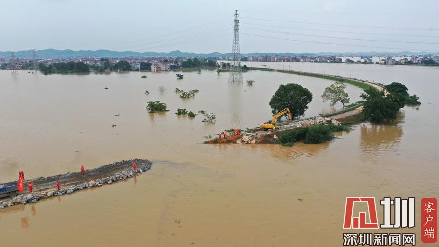 2020年7月13日,江西鄱陽縣問桂道圩,決口封堵進入最后攻堅階段。受持續(xù)強降雨影響,7月8日20時35分,位于江西省上饒市鄱陽縣鄱陽鎮(zhèn)的問桂道圩堤出現(xiàn)漫決險情,導(dǎo)致良田、村莊受淹,受淹村民已安全轉(zhuǎn)移。連日來,中國安能第二工程局在此處對問桂道決口圩堤進占填筑,目前進入最后攻堅階段。
