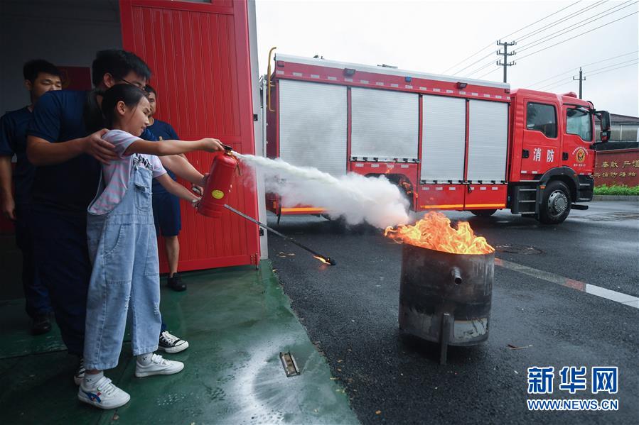 7月16日,一名小學(xué)生在東林鎮(zhèn)消防綜合應(yīng)急救援隊隊員的指導(dǎo)下學(xué)習(xí)使用滅火器。當(dāng)日,浙江省湖州市吳興區(qū)東林鎮(zhèn)舉辦暑期“安全防護小超人”主題活動?;顒佑舍t(yī)護人員、消防隊員等為學(xué)生及家長講授日常安全避險及溺水急救知識,中小學(xué)們還在現(xiàn)場學(xué)習(xí)了簡易包扎、心肺復(fù)蘇的正確方式,并了解滅火器、滅火毯等消防器材的使用,為學(xué)生平安過暑期打好安全防護“預(yù)防針”。新華社記者 徐昱 攝