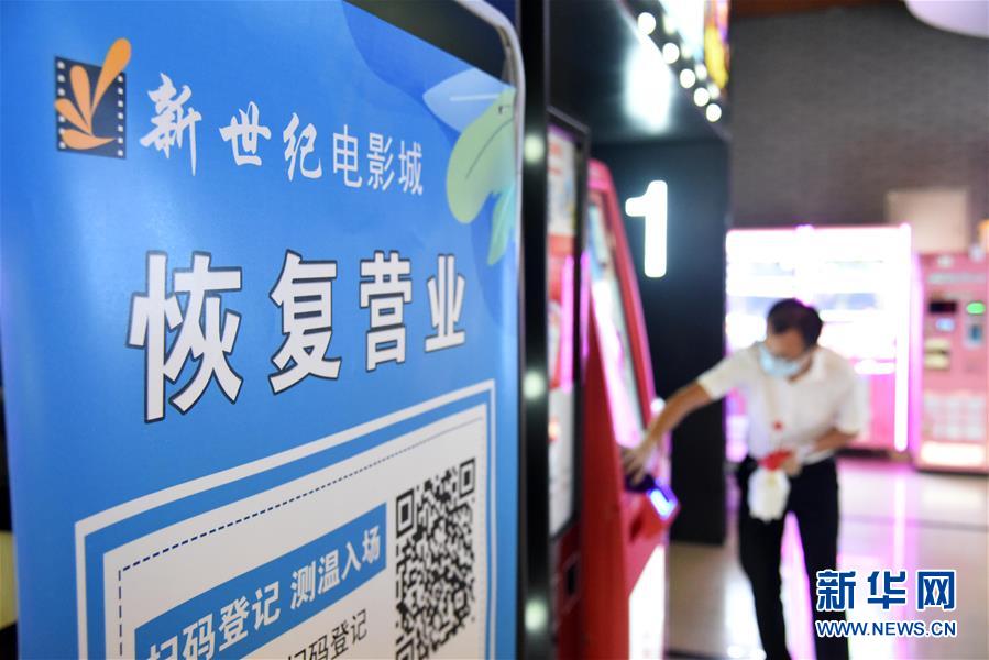 7月20日,濟南新世紀(jì)電影城陽光100店的員工在對影院設(shè)施進行消殺。當(dāng)日,山東濟南市部分電影院在嚴(yán)格防控疫情的基礎(chǔ)上陸續(xù)恢復(fù)開放。新華社記者王凱攝