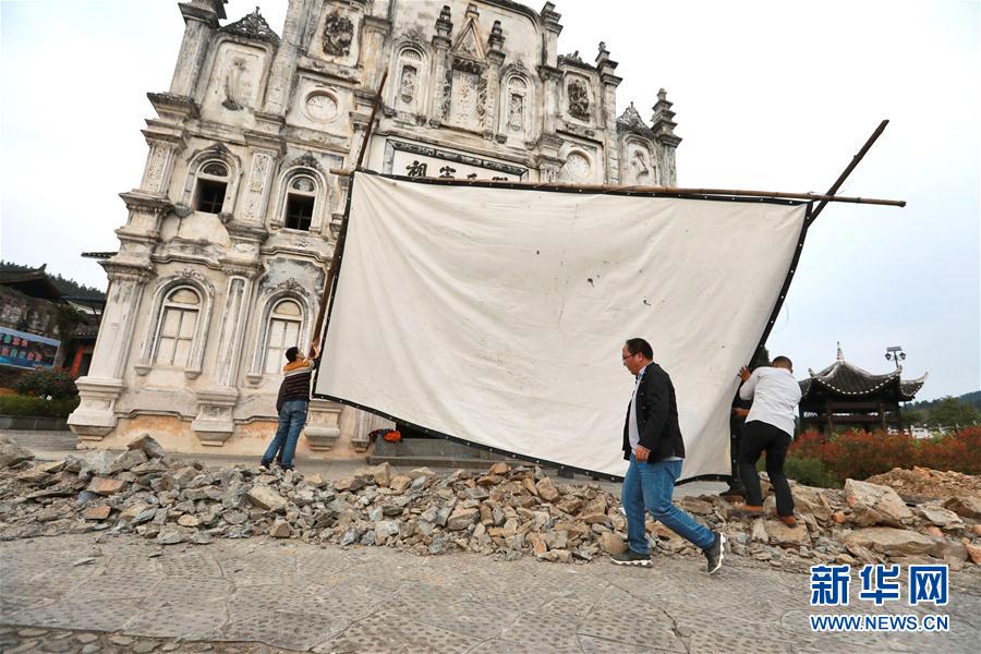 2019年3月19日,在天柱縣坌處鎮(zhèn)三門塘村,黃宜印(中)在搭建電影播放幕布。侗族青年黃宜印是貴州省黔東南苗族侗族自治州天柱縣的一名公益電影放映員。從2014年起,他常年行走在大山里,為山區(qū)群眾播放電影。僅2018年,黃宜印就在天柱縣的37個村寨播放電影444場。新華社記者歐東衢攝