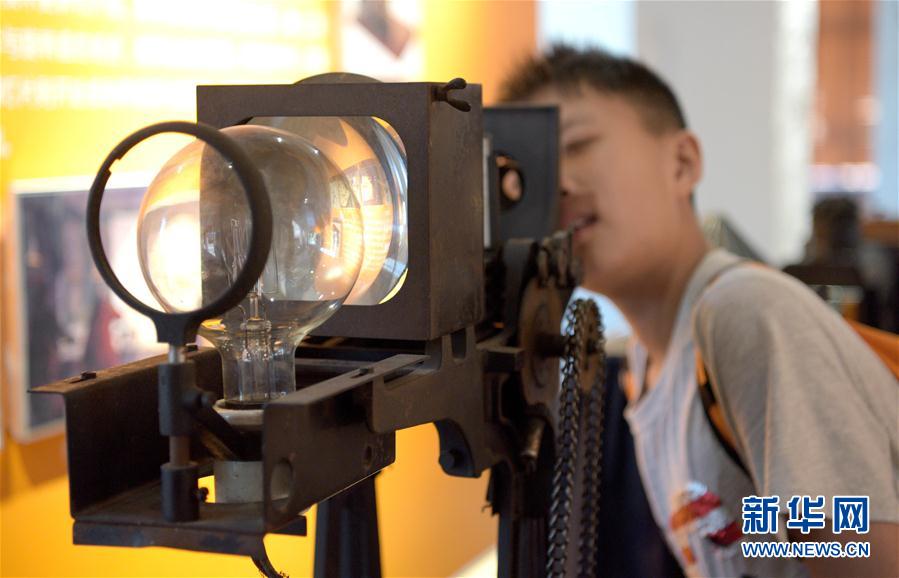 2019年8月29日,參觀者在西影電影藝術(shù)體驗(yàn)中心參觀展出的老式幻燈機(jī)。當(dāng)日,陜西省西安市西影電影藝術(shù)體驗(yàn)中心正式對(duì)外開放。新華社記者劉瀟攝
