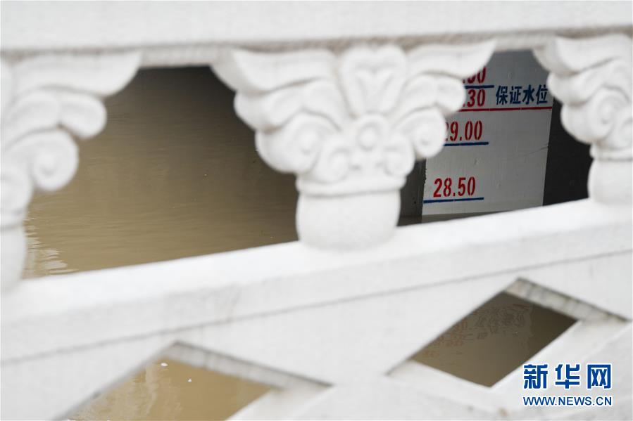 這是7月23日在安徽省阜南縣拍攝的關(guān)閘后的淮河王家壩閘閘下水位。當(dāng)日13時(shí),淮河干流王家壩閘關(guān)閘,停止向蒙洼蓄洪區(qū)泄洪。新華社記者張端攝