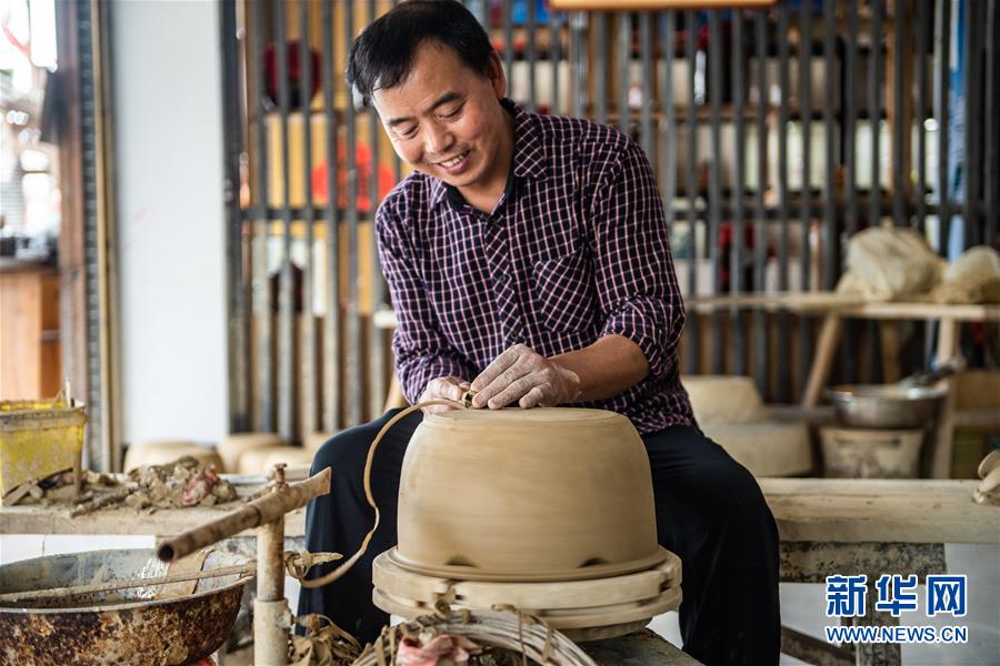 母先才在制作陶器(7月14日攝)。新華社記者 陶亮 攝
