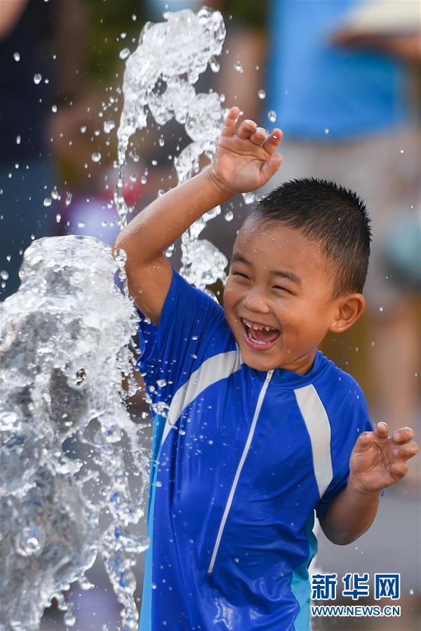 7月24日,一名小男孩在北京華熙LIVE·五棵松商業(yè)街區(qū)的一處噴泉戲水。北京市氣象局7月24日傍晚發(fā)布稱,24日截至16時30分,平原大部分地區(qū)出現37℃以上高溫天氣,局地氣溫超過40℃。北京市已于23日發(fā)布高溫藍色預警,預計25日全市大部分地區(qū)日最高氣溫仍將達35℃以上。新華社記者陳曄華攝