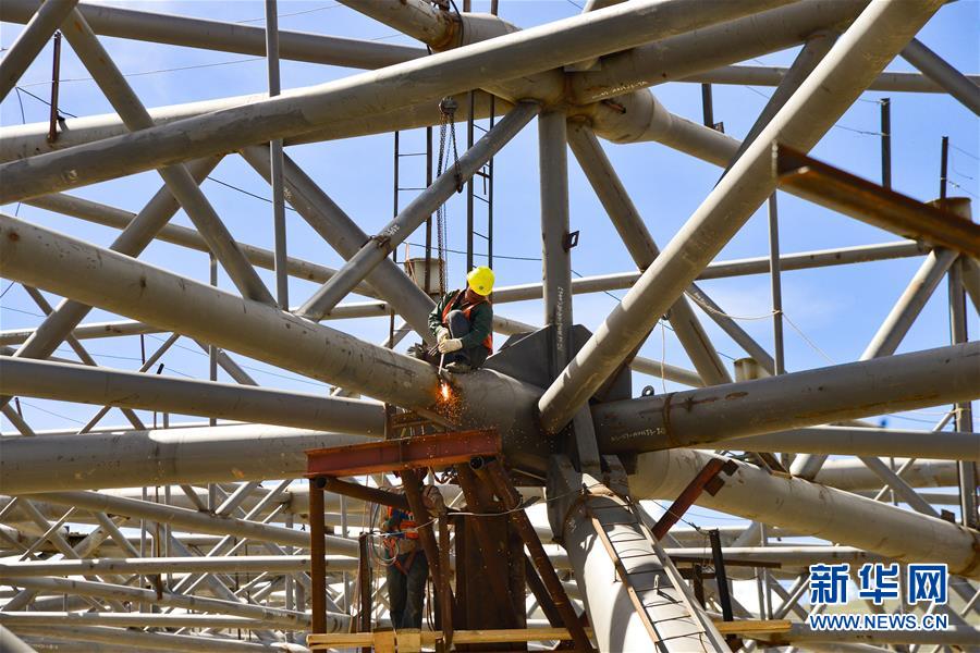 7月27日,工人在拉薩貢嘎國際機場T3航站樓的工地上作業(yè)。新華社記者 田金文 攝