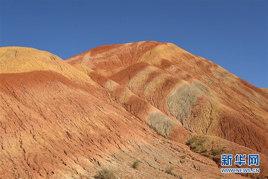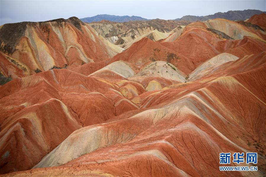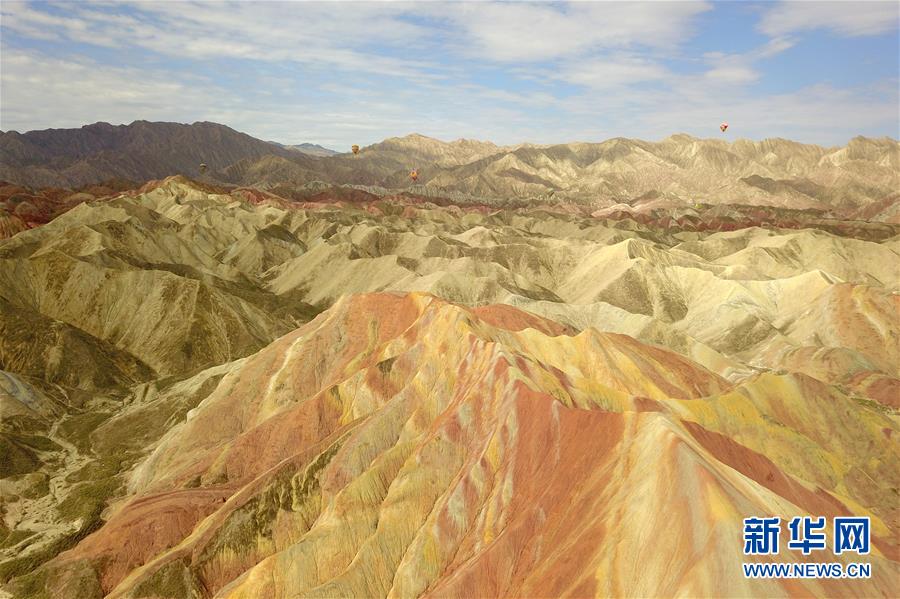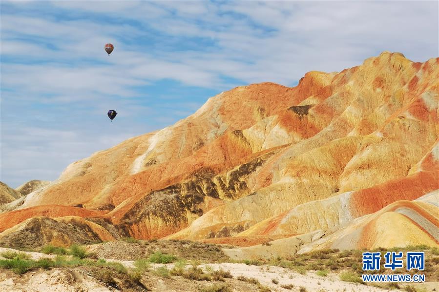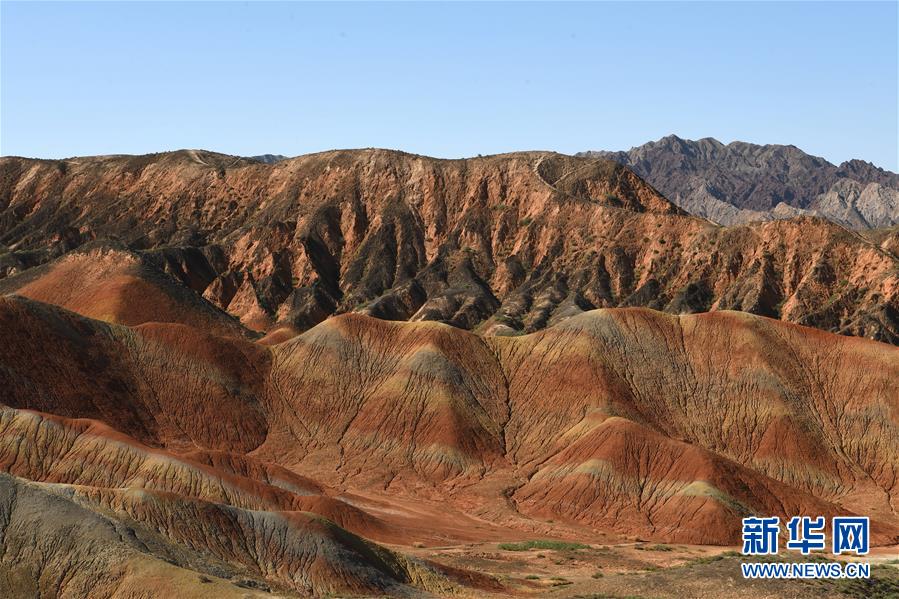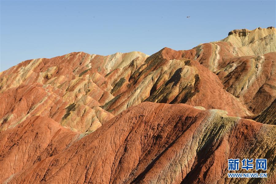 盛夏時節(jié),地處甘肅省張掖市的張掖世界地質公園迎來最美季節(jié)。張掖世界地質公園最顯著的特征是有由色彩斑斕的褶皺泥巖和砂巖組成的彩色丘陵,同時還擁有自然侵蝕在山體上形成的“窗欞狀”“宮殿式”丹霞地貌和古代洋殼殘余九個泉蛇綠巖套。
