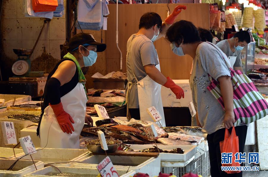 8月1日,市民在香港街頭購買鮮魚。新華社記者盧炳輝攝