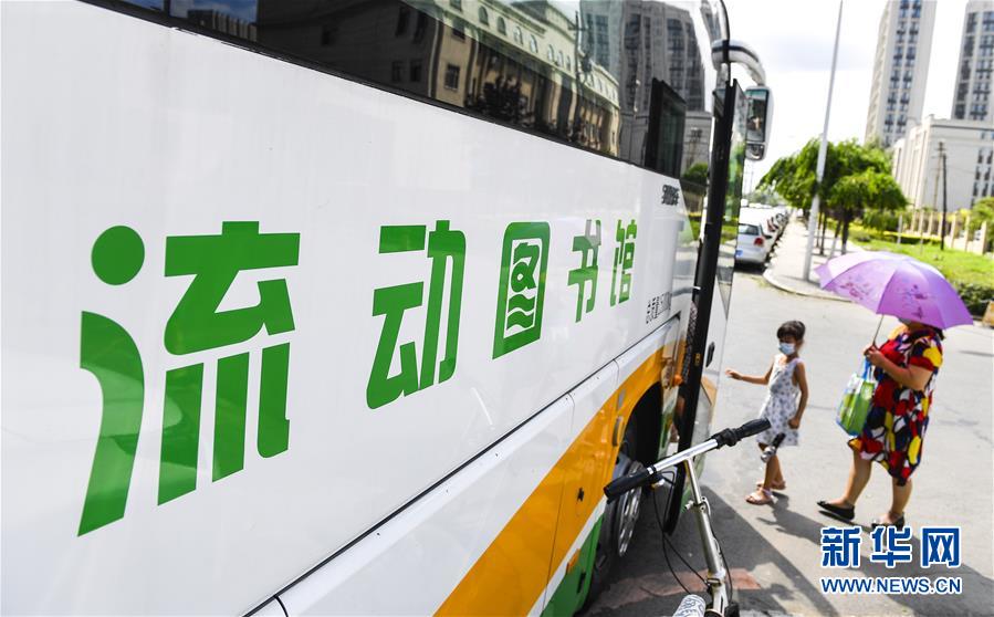8月5日,在長春市一處社區(qū)服務(wù)點,市民進入“流動圖書館”借閱圖書。三千冊圖書,一輛大巴車,穿梭在城市的街頭巷尾。在吉林長春,長春市圖書館利用流動圖書車,定期在市內(nèi)15個固定服務(wù)點間巡回流動,為市民提供便捷的圖書借閱服務(wù)。新華社記者許暢攝