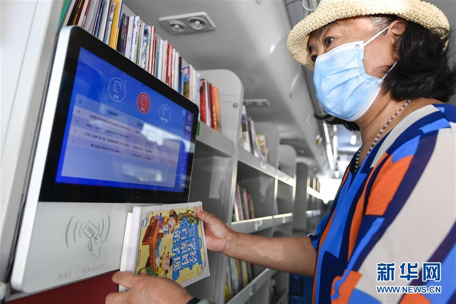 8月5日,長春市民在“流動圖書館”里自助辦理圖書借閱。三千冊圖書,一輛大巴車,穿梭在城市的街頭巷尾。在吉林長春,長春市圖書館利用流動圖書車,定期在市內(nèi)15個固定服務(wù)點間巡回流動,為市民提供便捷的圖書借閱服務(wù)。新華社記者許暢攝