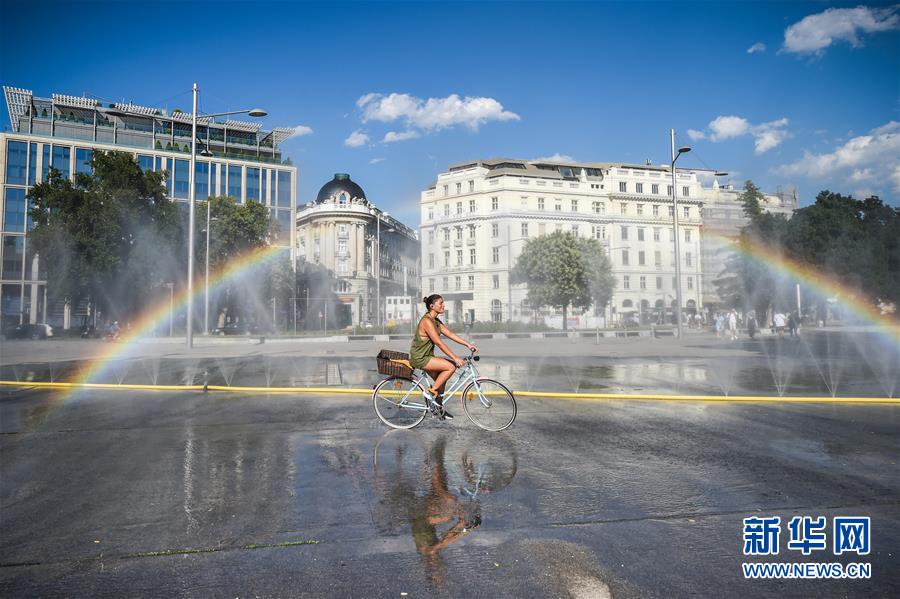 炎炎夏日里,水邊、林間、花叢……都能看到人們消暑納涼的身影。人們?cè)谙硎芟娜湛鞓返耐瑫r(shí),也能體會(huì)到絲絲清涼。這是7月28日,一名女子騎車經(jīng)過奧地利維也納一處廣場(chǎng)的噴水設(shè)施。新華社記者郭晨攝