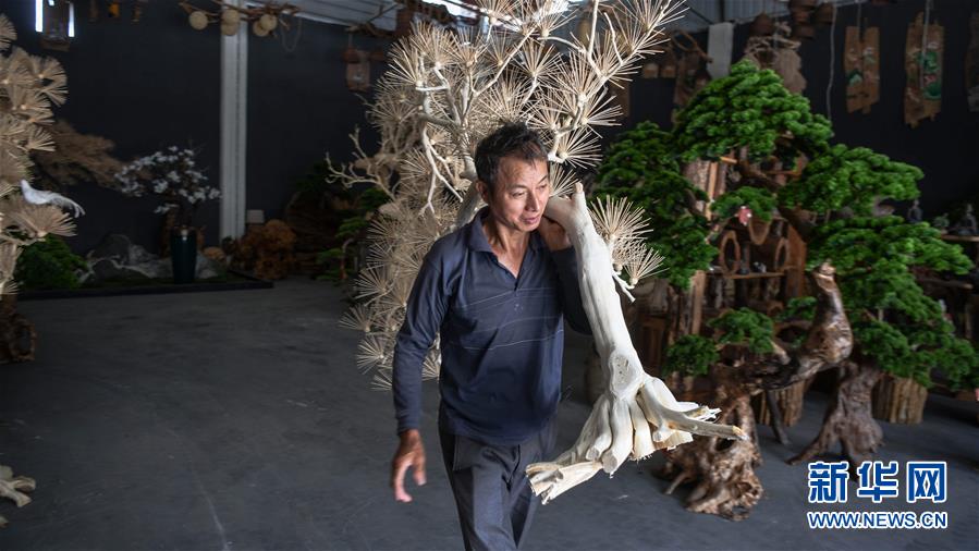 8月7日,一名工人在永??h永安鄉(xiāng)根雕工藝品就業(yè)扶貧車間搬運(yùn)根雕半成品。2017年以來,廣西桂林市永福縣永安鄉(xiāng)通過幫扶返鄉(xiāng)青年創(chuàng)業(yè)的方式,建立起根雕工藝品就業(yè)扶貧車間,組織貧困群眾進(jìn)車間務(wù)工學(xué)藝,把當(dāng)?shù)刎S富的朽木和柑橘樹根枝資源利用起來,加工成盆景、茶桌、吊燈等根雕工藝品,不僅幫助貧困群眾在家門口掌握一技之長(zhǎng),還讓他們?cè)诿撠氄焙髮?shí)現(xiàn)穩(wěn)定增收。新華社記者張愛林?jǐn)z