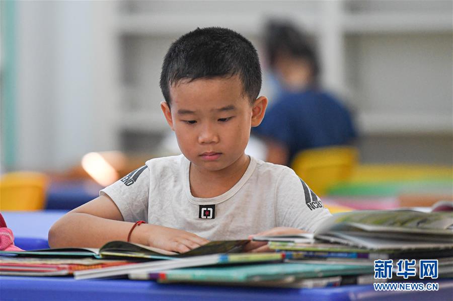 8月8日,小朋友在位于??诘暮D鲜D書(shū)館閱讀書(shū)籍。暑假期間,許多小朋友來(lái)到海南省圖書(shū)館閱讀書(shū)籍,在書(shū)香中度過(guò)快樂(lè)暑假。新華社記者 蒲曉旭 攝