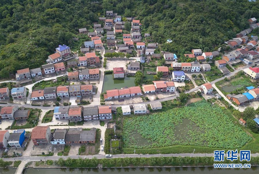 鳥瞰鄂州市長港鎮(zhèn)峒山村(8月6日攝,無人機照片)。新華社記者 程敏 攝