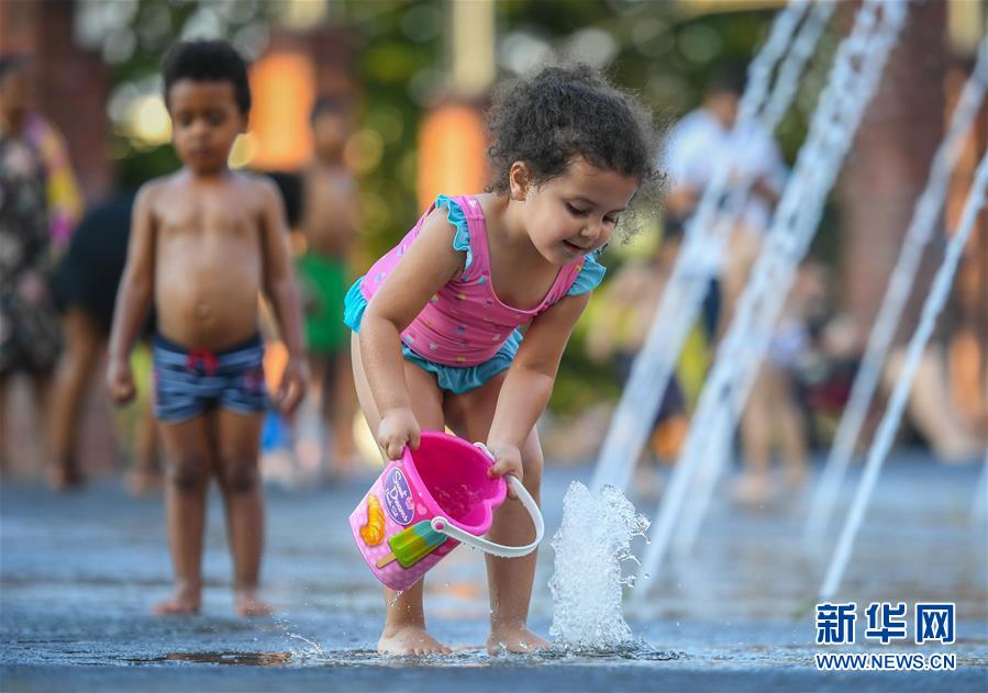 8月8日,一名兒童在德國(guó)法蘭克福一處噴泉內(nèi)戲水。 當(dāng)日,法蘭克福遭遇高溫天氣,最高氣溫達(dá)37攝氏度。 新華社記者 逯陽(yáng) 攝