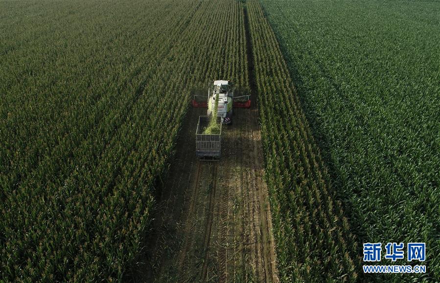 8月11日,灤南縣馬城鎮(zhèn)湛店子村的農(nóng)民使用大型機(jī)械收獲青貯玉米(無人機(jī)照片)。近日,河北省灤南縣的12萬畝青貯玉米陸續(xù)開始收獲,為當(dāng)?shù)啬膛pB(yǎng)殖提供新鮮優(yōu)質(zhì)飼料。作為河北省奶牛養(yǎng)殖大縣,灤南縣近年來大力推廣奶牛青貯玉米喂養(yǎng)模式,引導(dǎo)農(nóng)民種植青貯玉米,促進(jìn)農(nóng)民增收。新華社記者楊世堯攝