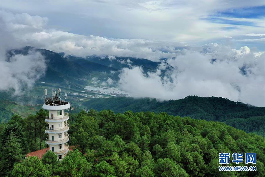 邛海瀘山國家級風景名勝區(qū)掩映在云霧中(8月13日攝,無人機照片)。 新華社記者 李賀 攝