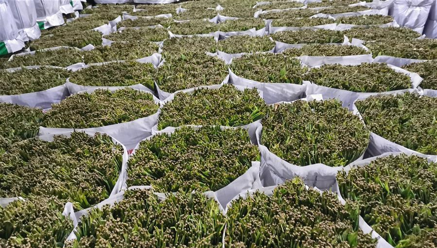 6月18日,在湖南省張家界市桑植縣,康華粽葉扶貧工廠(chǎng)的工人在搬運(yùn)粽葉。