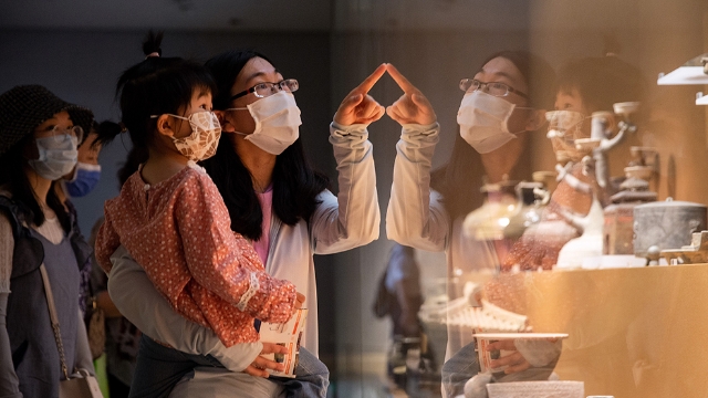 2020年5月18日,參觀者在南京博物院觀看展品。