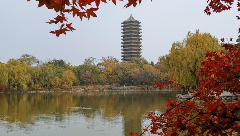 初冬時節(jié),陜西省西安市長安區(qū)羅漢洞村終南山古觀音禪寺內(nèi)的千年銀杏樹滿目金黃,落葉宛如金毯,吸引游客前來參觀游覽。