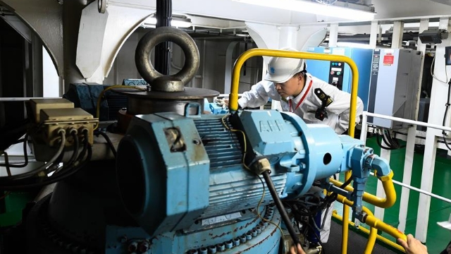 1月15日,??诤J戮止ぷ魅藛T對??吭诤?谀细鄞a頭的粵海鐵4號客滾船進行春運前專項檢查。