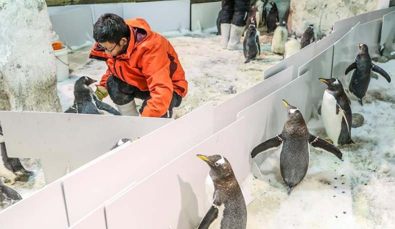 遼寧大連圣亞海洋世界有一個專門幫助企鵝寶寶學(xué)習(xí)成長的特殊“幼兒園”,白眉企鵝寶寶要在這里學(xué)會獨(dú)立吃魚、游泳等技能后才可以“畢業(yè)”。