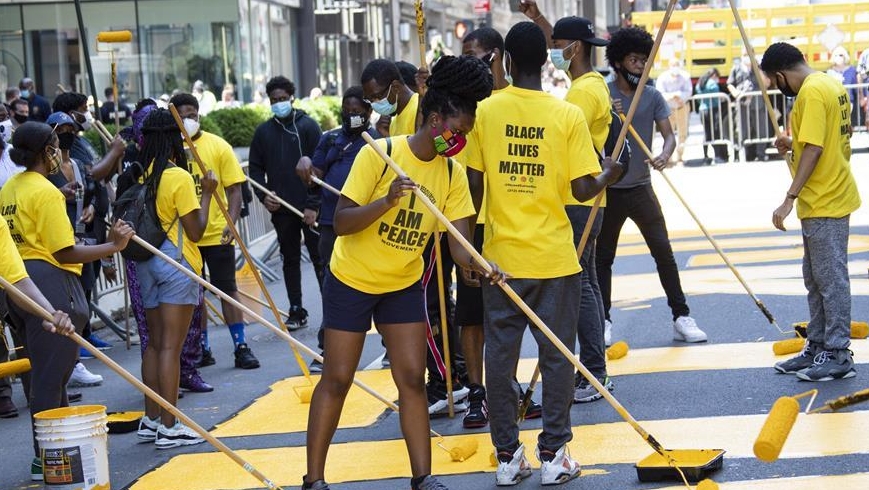 紐約特朗普大廈前路面涂上“黑人的命也是命”標(biāo)語