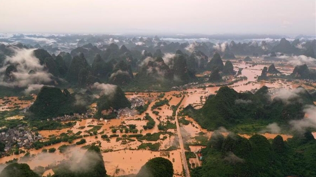 6月6日至8日,廣西陽朔縣普降暴雨,局部降特大暴雨,全縣9個鄉(xiāng)鎮(zhèn)出現(xiàn)洪澇災害。