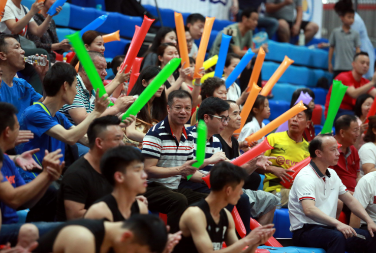 圖3:深圳業(yè)余籃球氛圍濃厚,現(xiàn)場觀眾為球隊加油。