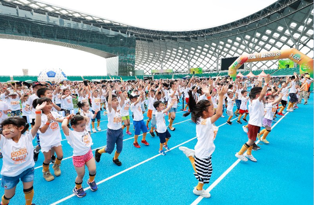 而在環(huán)球足球挑戰(zhàn)環(huán)節(jié),許多小選手是第一次接觸足球。通過數(shù)碼感應(yīng)裝置和小選手們佩戴的智能手環(huán),將帶球、頂球、射門等足球動作實時反饋呈現(xiàn)運動結(jié)果,其樂無窮的項目讓孩子們一一挑戰(zhàn)停不下來!