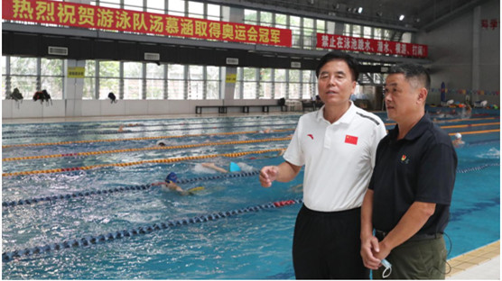 8月2日上午,深圳市文化廣電旅游體育局局長曾相萊一行前往深圳市體工大隊進行調研,就市游泳隊湯慕涵摘得東京奧運會4×200米自由泳金牌表示祝賀。