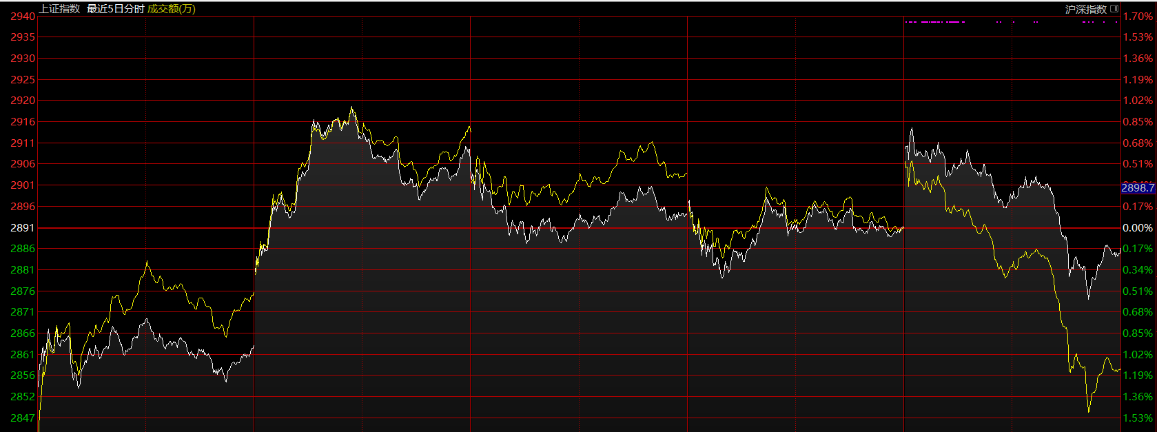 上證指數(shù)上周在這個(gè)位置做中樞擴(kuò)展,將五分鐘上漲的第二個(gè)中樞擴(kuò)展為三十分鐘級(jí)別的。這是強(qiáng)勢的一種表現(xiàn),市場在震蕩中消化拋壓。這里需關(guān)注大中樞的下軌2845點(diǎn),跌破后,可能會(huì)帶來指數(shù)的二次探底,這將是絕佳的加倉點(diǎn)位,不跌破則市場隨時(shí)會(huì)上攻2950點(diǎn)。目前態(tài)勢下,應(yīng)以持倉為主。