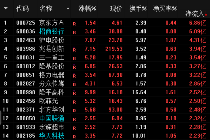 周四兩市資金凈流入居前公司:其中隆平高科(000998)龍虎榜成交顯示機構(gòu)席位大局買入。