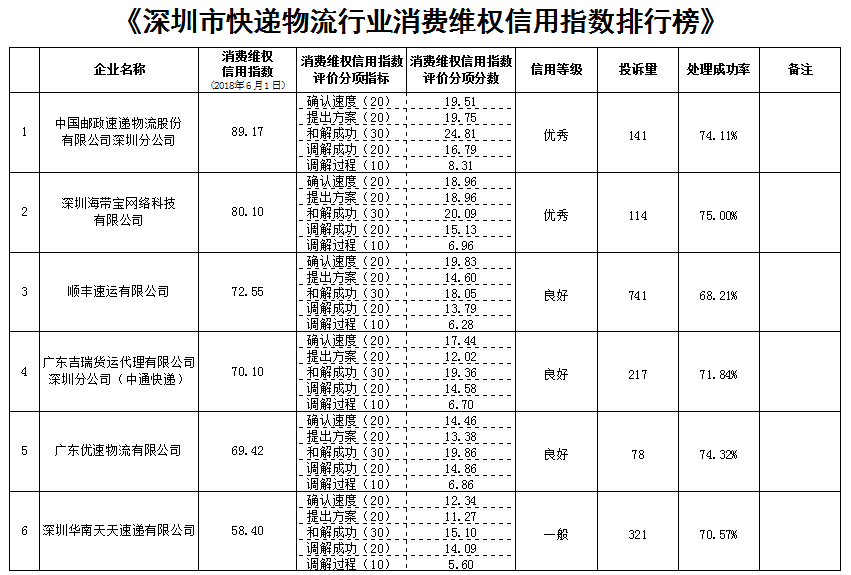 深圳新聞網(wǎng)訊 6月26日,深圳市消費者委員會(以下簡稱“市消委會”)為加強對商品和服務(wù)的社會監(jiān)督,客觀公正反映經(jīng)營者的消費投訴處理情況,發(fā)布深圳市快遞物流行業(yè)消費維權(quán)信用指數(shù)排行榜,引導(dǎo)消費者正確消費。