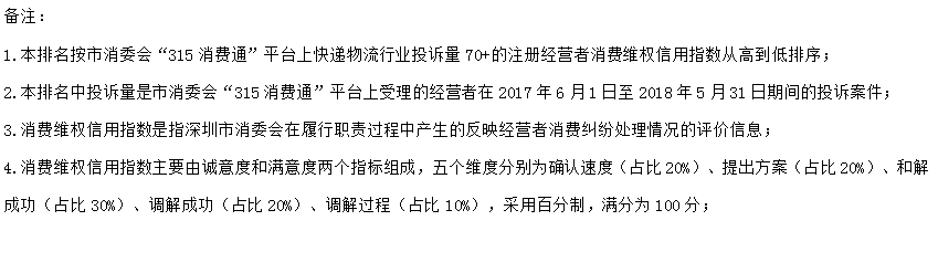 附:《深圳市快遞物流行業(yè)消費維權(quán)信用指數(shù)排行榜》